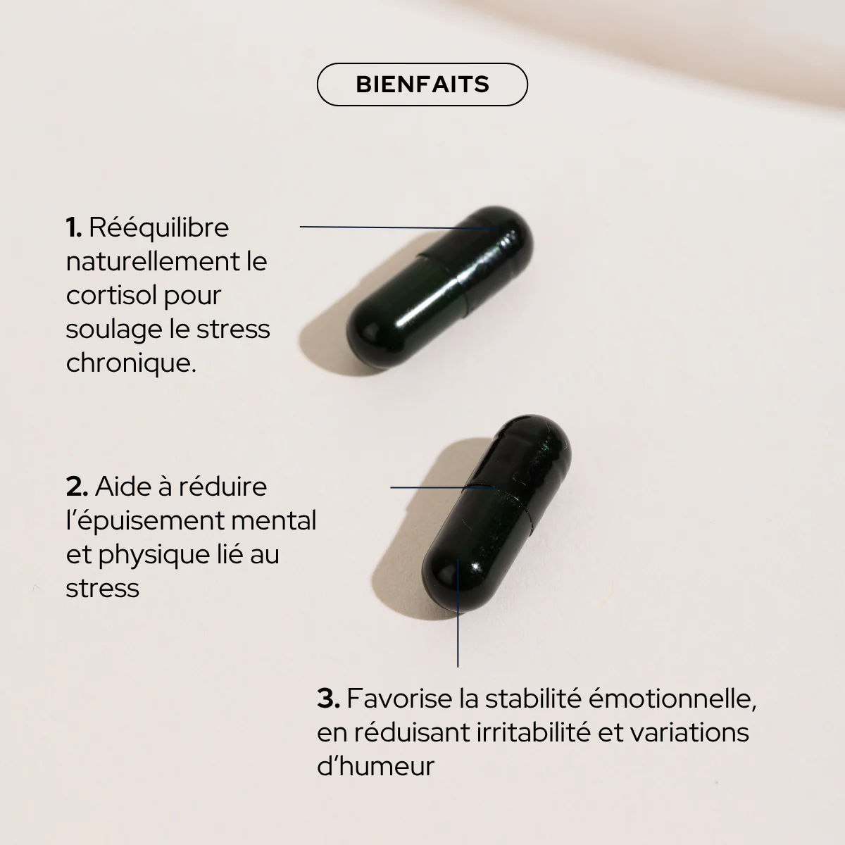 • Rééquilibre naturellement le cortisol pour soulager le stress chronique