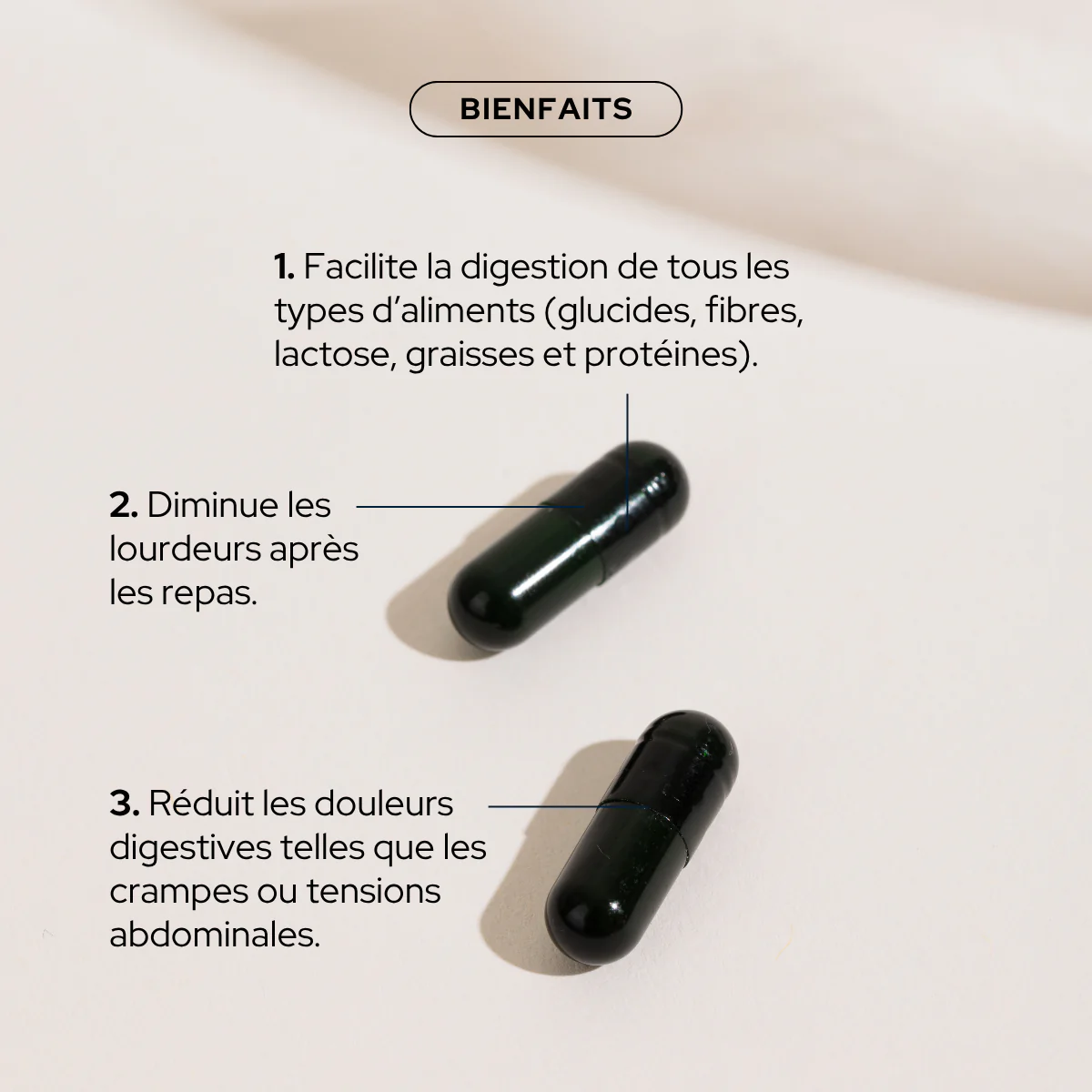 Le soutien enzymatique pour une digestion accélérée et facilitée, sans inconforts.